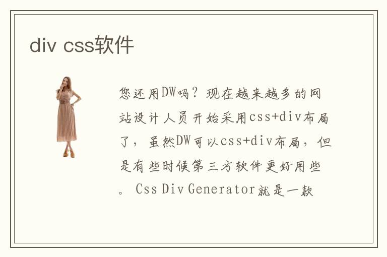 您還用DW嗎?現(xiàn)在越來(lái)越多的網(wǎng)站設(shè)計(jì)人員開(kāi)始采用css+div布局了,雖然DW可以css+div布局,但是有些時(shí)候第三方軟件更好用些。 Css Div Generator就是一款免費(fèi)的第三方css