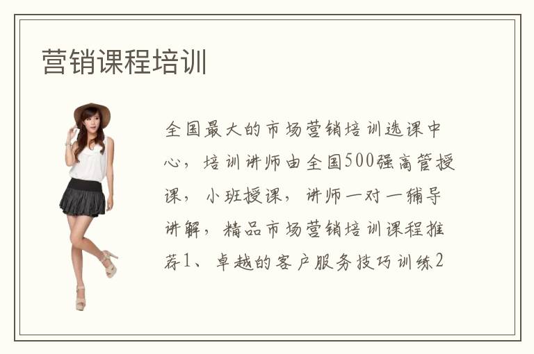 全國最大的市場營銷培訓選課中心,培訓講師由全國500強高管授課,小班授課,講師一對一輔導講解,精品市場營銷培訓課程推薦1、卓越的客戶服務技巧訓練2、出口營銷技巧