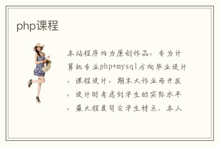 本站程序均為原創(chuàng)作品,專為計(jì)算機(jī)專業(yè)php+mysql方向畢業(yè)設(shè)計(jì)、課程設(shè)計(jì)、期末大作業(yè)而開(kāi)發(fā),設(shè)計(jì)時(shí)考慮到學(xué)生的實(shí)際水平,最大程度符合學(xué)生特點(diǎn)。本人從事計(jì)算機(jī)專業(yè)