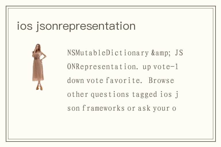 NSMutableDictionary & JSONRepresentation. up vote-1 down vote favorite. Browse other questions tagged ios json frameworks or ask your own question. asked.