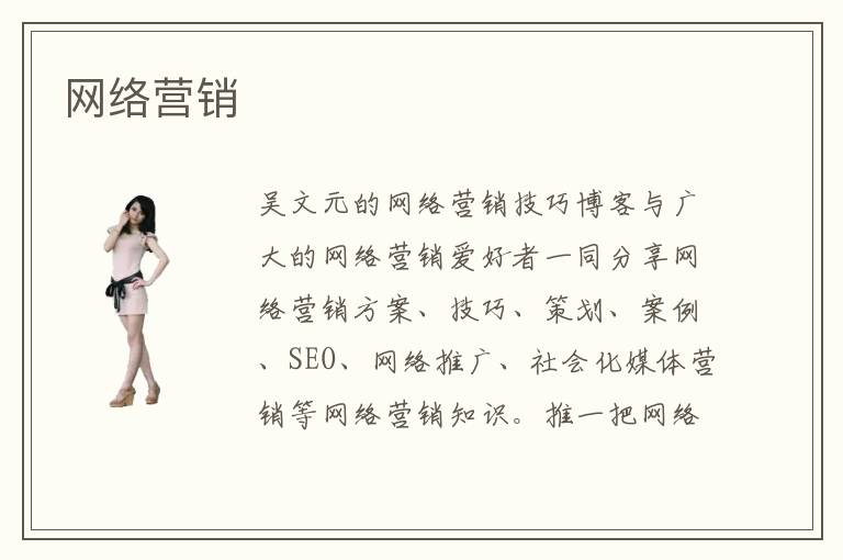 吳文元的網(wǎng)絡(luò)營銷技巧博客與廣大的網(wǎng)絡(luò)營銷愛好者一同分享網(wǎng)絡(luò)營銷方案、技巧、策劃、案例、SEO、網(wǎng)絡(luò)推廣、社會化媒體營銷等網(wǎng)絡(luò)營銷知識。