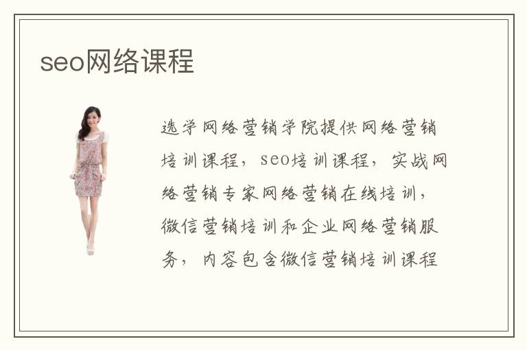 選學(xué)網(wǎng)絡(luò)營銷學(xué)院提供網(wǎng)絡(luò)營銷培訓(xùn)課程,seo培訓(xùn)課程,實(shí)戰(zhàn)網(wǎng)絡(luò)營銷專家網(wǎng)絡(luò)營銷在線培訓(xùn),微信營銷培訓(xùn)和企業(yè)網(wǎng)絡(luò)營銷服務(wù),內(nèi)容包含微信營銷培訓(xùn)課程,SEO培訓(xùn)課程,