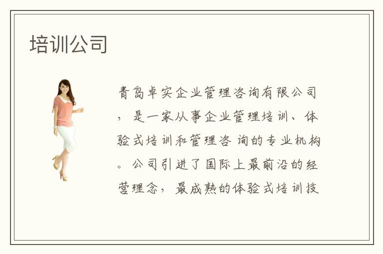 青島卓實(shí)企業(yè)管理咨詢有限公司,是一家從事企業(yè)管理培訓(xùn)、體驗(yàn)式培訓(xùn)和管理咨 詢的專業(yè)機(jī)構(gòu)。公司引進(jìn)了國(guó)際上最前沿的經(jīng)營(yíng)理念,最成熟的體驗(yàn)式培訓(xùn)技術(shù),最先進(jìn)的培訓(xùn)和