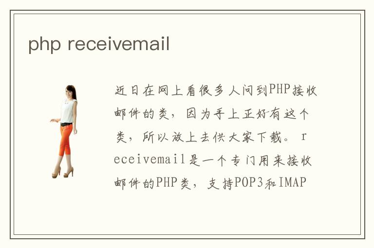 近日在網上看很多人問到PHP接收郵件的類,因為手上正好有這個類,所以放上去供大家下載。 receivemail是一個專門用來接收郵件的PHP類,支持POP3和IMAP
