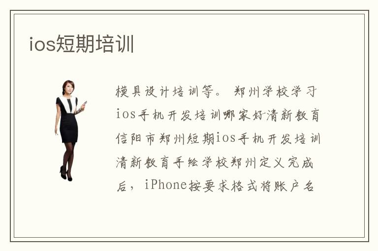 模具設(shè)計(jì)培訓(xùn)等。 鄭州學(xué)校學(xué)習(xí)ios手機(jī)開(kāi)發(fā)培訓(xùn)哪家好清新教育信陽(yáng)市鄭州短期ios手機(jī)開(kāi)發(fā)培訓(xùn)清新教育手繪學(xué)校鄭州定義完成后,iPhone按要求格式將賬戶名和密碼發(fā)送請(qǐng)求到