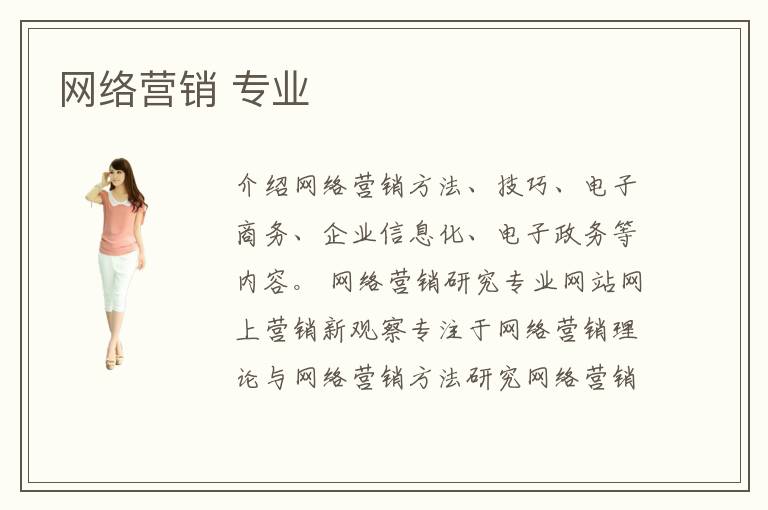 介紹網(wǎng)絡(luò)營銷方法、技巧、電子商務(wù)、企業(yè)信息化、電子政務(wù)等內(nèi)容。 網(wǎng)絡(luò)營銷研究專業(yè)網(wǎng)站網(wǎng)上營銷新觀察專注于網(wǎng)絡(luò)營銷理論與網(wǎng)絡(luò)營銷方法研究網(wǎng)絡(luò)營銷策略,網(wǎng)站建設(shè)與