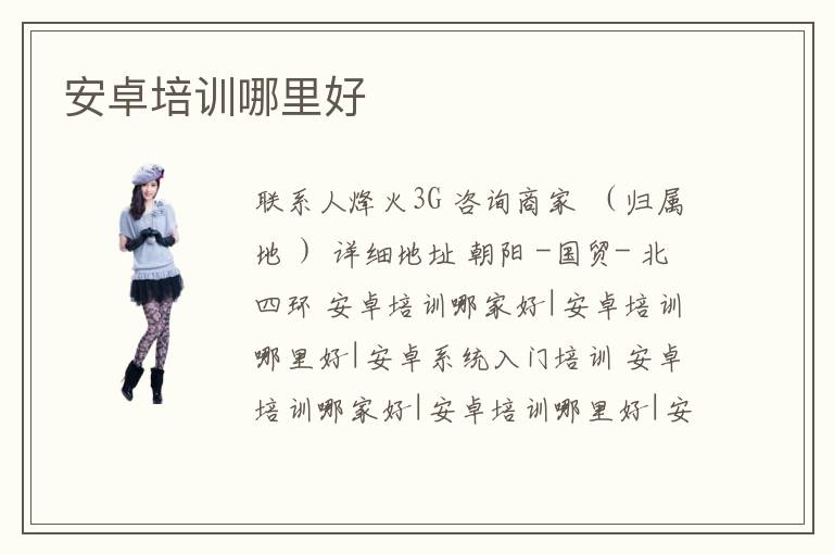聯(lián)系人烽火3G 咨詢商家 (歸屬地 ) 詳細(xì)地址 朝陽 -國貿(mào)- 北四環(huán) 安卓培訓(xùn)哪家好|安卓培訓(xùn)哪里好|安卓系統(tǒng)入門培訓(xùn) 安卓培訓(xùn)哪家好|安卓培訓(xùn)哪里好|安卓系統(tǒng)入
