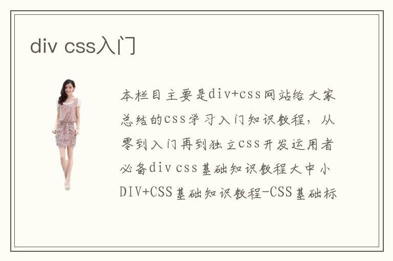 本欄目主要是div+css網(wǎng)站給大家總結(jié)的css學(xué)習(xí)入門知識教程,從零到入門再到獨立css開發(fā)運用者必備div css基礎(chǔ)知識教程