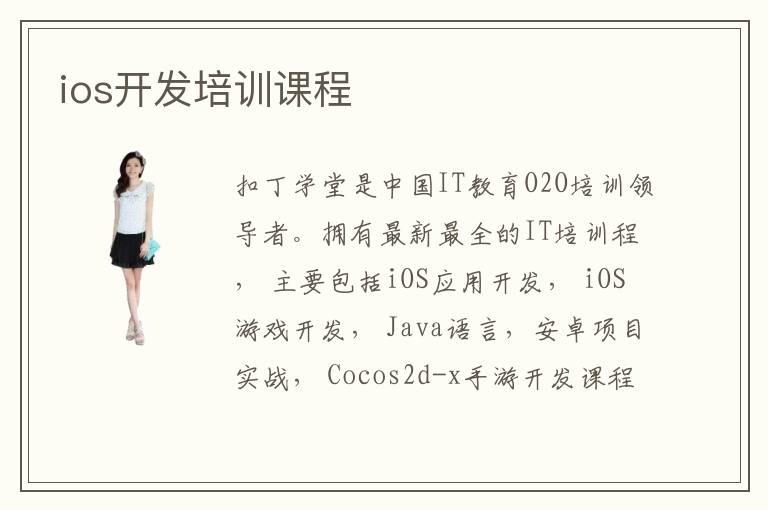 扣丁學(xué)堂是中國(guó)IT教育O2O培訓(xùn)領(lǐng)導(dǎo)者。擁有最新最全的IT培訓(xùn)程, 主要包括iOS應(yīng)用開(kāi)發(fā), iOS游戲開(kāi)發(fā), Java語(yǔ)言,安卓項(xiàng)目實(shí)戰(zhàn), Cocos2d-x手游開(kāi)發(fā)課程等多種高清