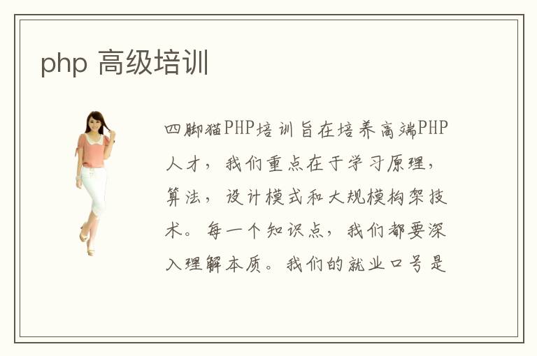 四腳貓PHP培訓(xùn)旨在培養(yǎng)高端PHP人才,我們重點(diǎn)在于學(xué)習(xí)原理,算法,設(shè)計(jì)模式和大規(guī)模構(gòu)架技術(shù)。每一個(gè)知識點(diǎn),我們都要深入理解本質(zhì)。我們的就業(yè)口號是“只去牛逼的公司