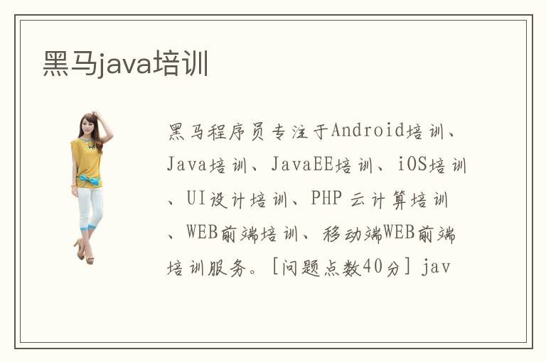 黑馬程序員專注于Android培訓(xùn)、Java培訓(xùn)、JavaEE培訓(xùn)、iOS培訓(xùn)、UI設(shè)計(jì)培訓(xùn)、PHP 云計(jì)算培訓(xùn)、WEB前端培訓(xùn)、移動(dòng)端WEB前端培訓(xùn)服務(wù)。