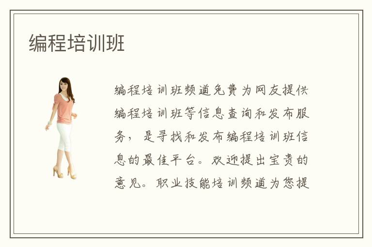 編程培訓(xùn)班頻道免費(fèi)為網(wǎng)友提供編程培訓(xùn)班等信息查詢和發(fā)布服務(wù),是尋找和發(fā)布編程培訓(xùn)班信息的最佳平臺(tái)。歡迎提出寶貴的意見。職業(yè)技能培訓(xùn)頻道為您提供大量的職業(yè)技能培