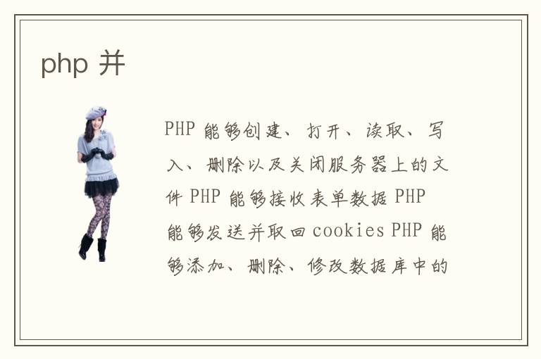 PHP 能夠創(chuàng)建、打開、讀取、寫入、刪除以及關閉服務器上的文件 PHP 能夠接收表單數(shù)據(jù) PHP 能夠發(fā)送并取回 cookies PHP 能夠添加、刪除、修改數(shù)據(jù)庫中的數(shù)據(jù) PHP 能夠限