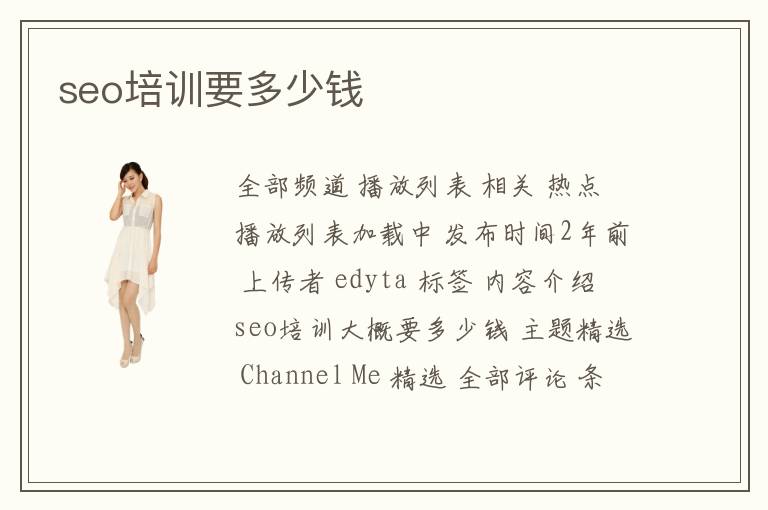 全部頻道 播放列表 相關(guān) 熱點(diǎn) 播放列表加載中 發(fā)布時(shí)間2年前 上傳者 edyta 標(biāo)簽 內(nèi)容介紹 seo培訓(xùn)大概要多少錢 主題精選 Channel Me 精選 全部評(píng)論 條評(píng)論 驗(yàn)