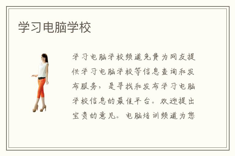 學(xué)習(xí)電腦學(xué)校頻道免費(fèi)為網(wǎng)友提供學(xué)習(xí)電腦學(xué)校等信息查詢和發(fā)布服務(wù),是尋找和發(fā)布學(xué)習(xí)電腦學(xué)校信息的最佳平臺。歡迎提出寶貴的意見。電腦培訓(xùn)頻道為您提供大量的電腦培訓(xùn)