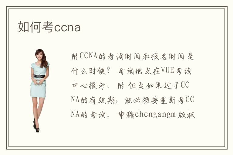 附CCNA的考試時間和報名時間是什么時候? 考試地點(diǎn)在VUE考試中心報考。 附 但是如果過了CCNA的有效期,就必須要重新考CCNA的考試。 審稿chengangm 版權(quán)