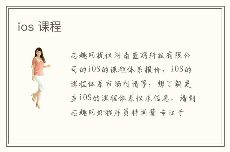 志趣網(wǎng)提供河南藍(lán)鷗科技有限公司的iOS的課程體系報價,iOS的課程體系市場行情等,想了解更多iOS的課程體系供求信息,請到志趣網(wǎng)