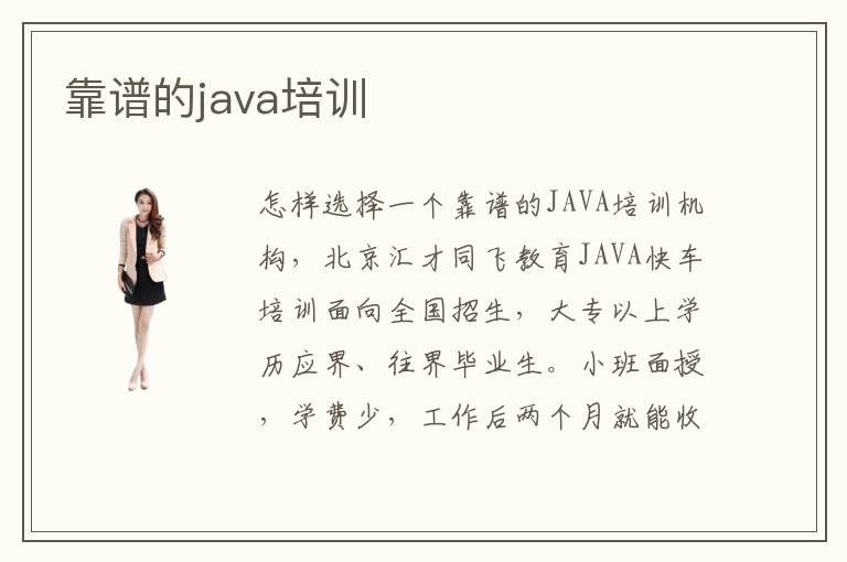 怎樣選擇一個靠譜的JAVA培訓(xùn)機構(gòu),北京匯才同飛教育JAVA快車培訓(xùn)面向全國招生,大專以上學(xué)歷應(yīng)界、往界畢業(yè)生。小班面授,學(xué)費少,工作后兩個月就能收回全部學(xué)費,從入
