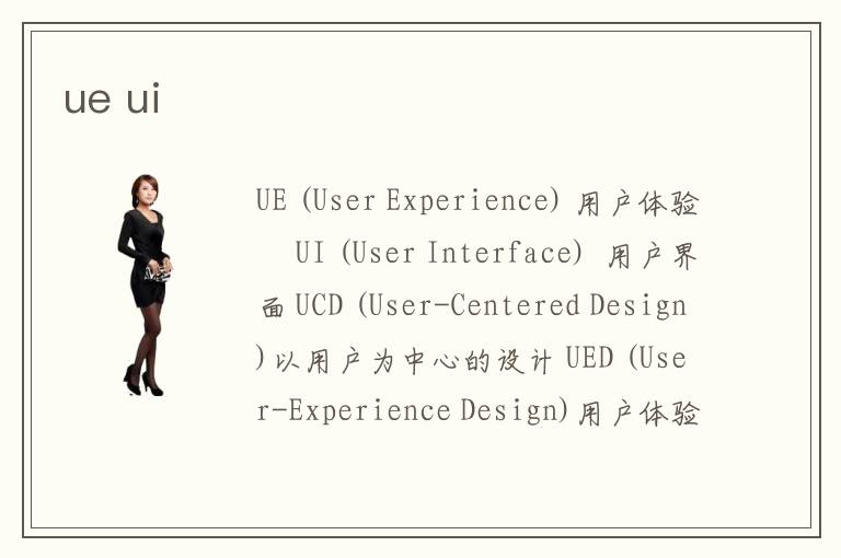 UI是用戶界面,即我們看到的界面的設計及美觀程度UE是用戶體驗,包括對用戶的引導、交互、用戶在使用過程中的感受等等一系列的東西UCD是指以用戶為中心