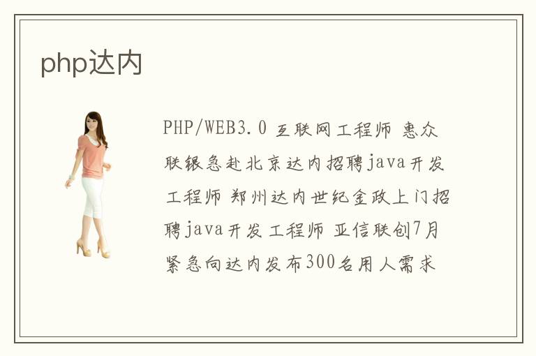 PHP/WEB3.0 互聯(lián)網(wǎng)工程師 惠眾聯(lián)銀急赴北京達內(nèi)招聘java開發(fā)工程師 鄭州達內(nèi)世紀(jì)金政上門招聘java開發(fā)工程師 亞信聯(lián)創(chuàng)7月緊急向達內(nèi)發(fā)布300名用人需求 科技合作伙伴永新