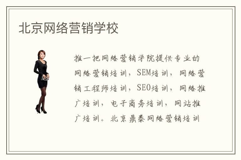 推一把網(wǎng)絡(luò)營銷學(xué)院提供專業(yè)的網(wǎng)絡(luò)營銷培訓(xùn),SEM培訓(xùn),網(wǎng)絡(luò)營銷工程師培訓(xùn),SEO培訓(xùn),網(wǎng)絡(luò)推廣培訓(xùn),電子商務(wù)培訓(xùn),網(wǎng)站推廣培訓(xùn)。
