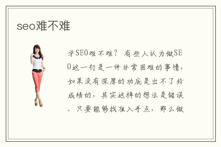 學SEO難不難? 有些人認為做SEO這一行是一件非常困難的事情,如果沒有深厚的功底是出不了好成績的,其實這樣的想法是錯誤。只要能夠找準入手點,那么做好SEO是一件非