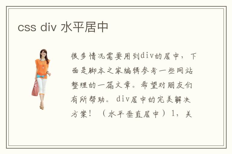 很多情況需要用到div的居中,下面是腳本之家編輯參考一些網(wǎng)站整理的一篇文章。希望對朋友們有所幫助。 div居中的完美解決方案! (水平垂直居中) 1,關(guān)于居中使用css為