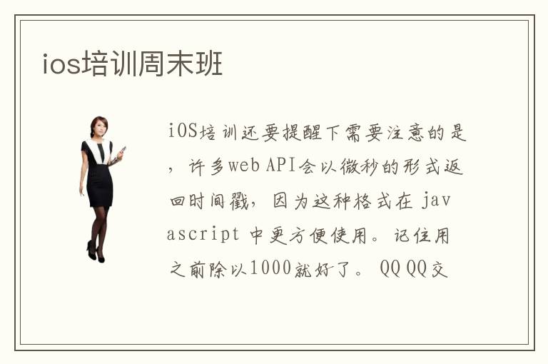 iOS培訓(xùn)還要提醒下需要注意的是,許多web API會(huì)以微秒的形式返回時(shí)間戳,因?yàn)檫@種格式在 javascript 中更方便使用。記住用之前除以1000就好了。 QQ QQ交流群