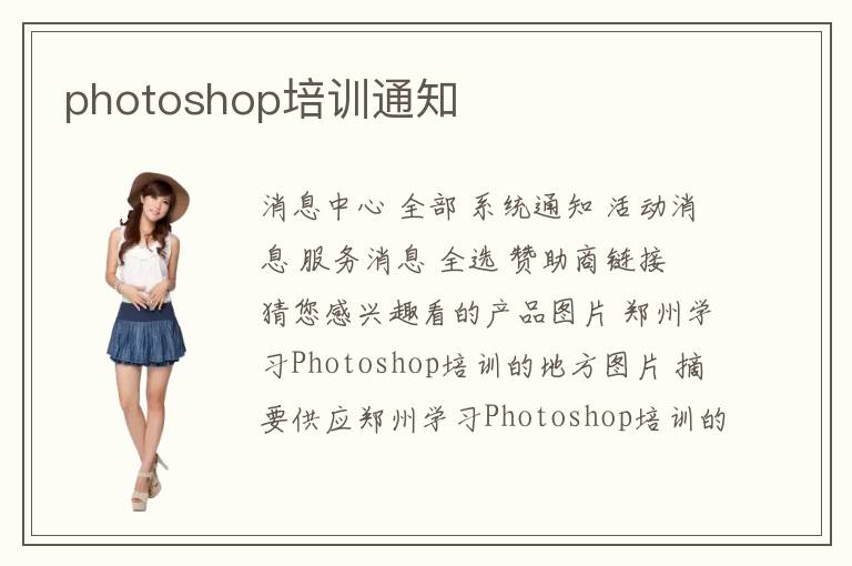 消息中心 全部 系統(tǒng)通知 活動(dòng)消息 服務(wù)消息 全選 贊助商鏈接 猜您感興趣看的產(chǎn)品圖片 鄭州學(xué)習(xí)Photoshop培訓(xùn)的地方圖片 摘要供應(yīng)鄭州學(xué)習(xí)Photoshop培訓(xùn)的地方暑期火熱報(bào)