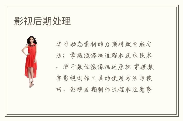 影視后期制作,影視后期制作就是對(duì)拍攝完的影片或者軟件制作的動(dòng)畫,做后期的處理,使其形成完整的影片,包括加特效,加文字,并且為影片制作聲音等。后期軟件具體可以分