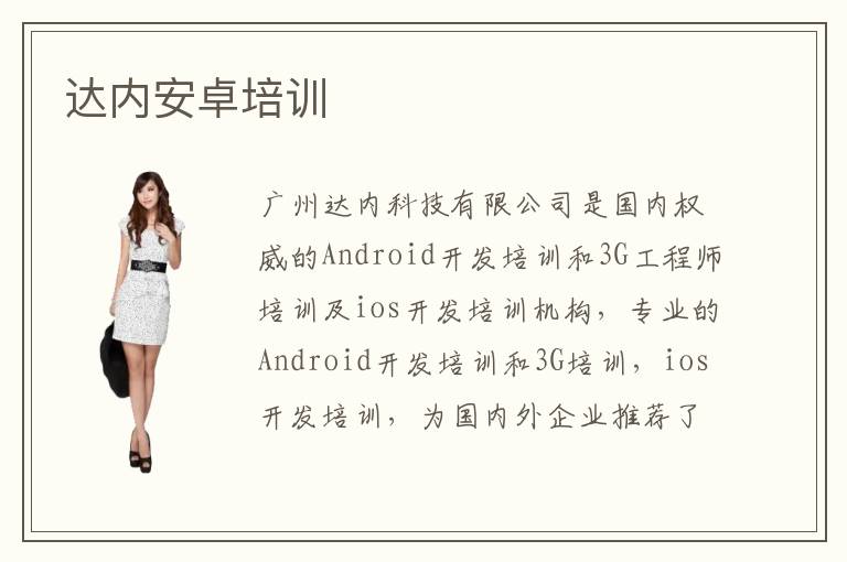廣州達內(nèi)科技有限公司是國內(nèi)權威的Android開發(fā)培訓和3G工程師培訓及ios開發(fā)培訓機構,專業(yè)的Android開發(fā)培訓和3G培訓,ios開發(fā)培訓,為國內(nèi)外企業(yè)推薦了大量優(yōu)秀的IT人才