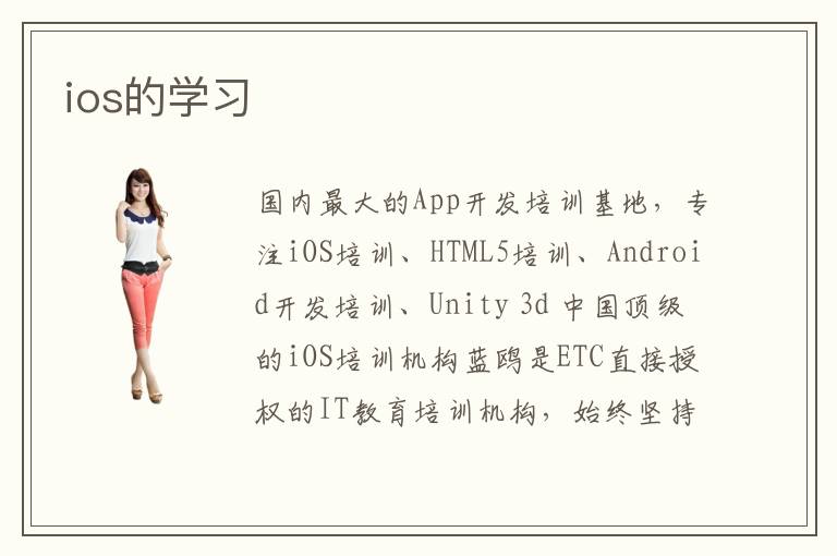 國(guó)內(nèi)最大的App開(kāi)發(fā)培訓(xùn)基地,專注iOS培訓(xùn)、HTML5培訓(xùn)、Android開(kāi)發(fā)培訓(xùn)、Unity 3d 中國(guó)頂級(jí)的iOS培訓(xùn)機(jī)構(gòu)藍(lán)鷗是ETC直接授權(quán)的IT教育培訓(xùn)機(jī)構(gòu),始終堅(jiān)持“讓移動(dòng)互聯(lián)網(wǎng)
