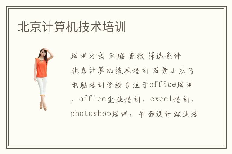 培訓方式 區(qū)域 查找 篩選條件 北京計算機技術(shù)培訓 石景山杰飛電腦培訓學校專注于office培訓,office企業(yè)培訓,excel培訓,photoshop培訓,平面設(shè)計就業(yè)培訓, 訪問手