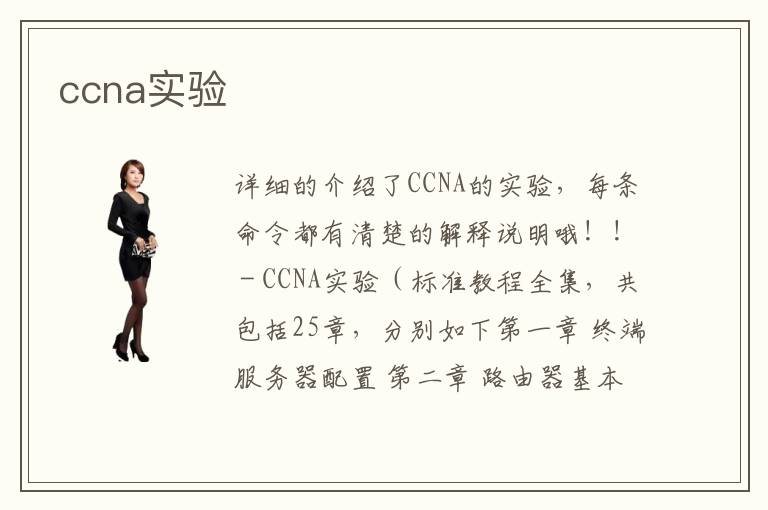 詳細(xì)的介紹了CCNA的實驗,每條命令都有清楚的解釋說明哦??! - CCNA實驗(標(biāo)準(zhǔn)教程全集,共包括25章,分別如下第一章 終端服務(wù)器配置 第二章 路由器基本配置 第三章 靜