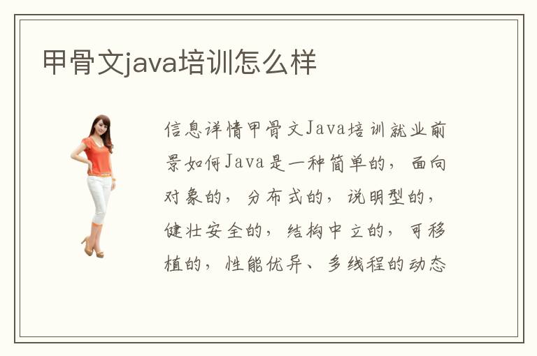 信息詳情甲骨文Java培訓(xùn)就業(yè)前景如何Java是一種簡單的,面向?qū)ο蟮模植际降?,說明型的,健壯安全的,結(jié)構(gòu)中立的,可移植的,性能優(yōu)異、多線程的動態(tài)語言。甲骨