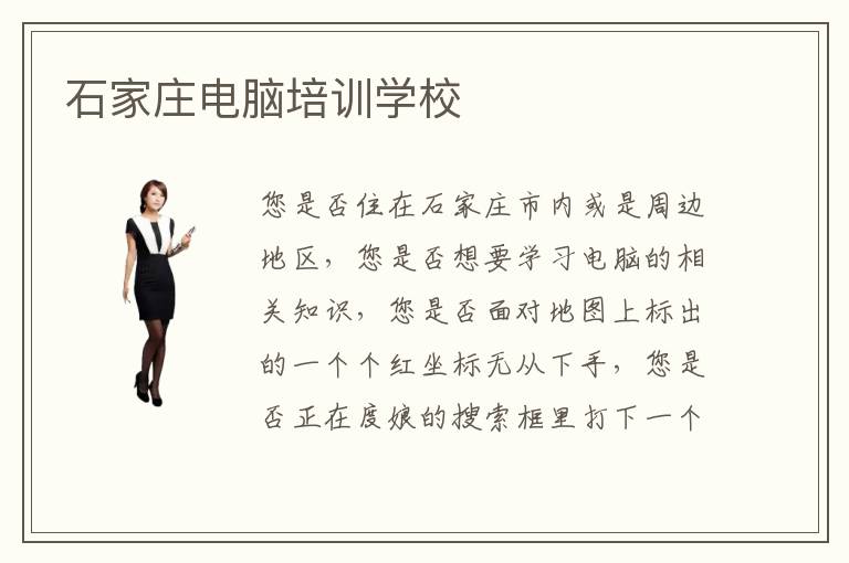 您是否住在石家莊市內(nèi)或是周邊地區(qū),您是否想要學習電腦的相關(guān)知識,您是否面對地圖上標出的一個個紅坐標無從下手,您是否正在度娘的搜索框里打下一個個石家莊電腦培訓電腦培訓學校的名字……現(xiàn)在,請放下盲目,我們這里準備了石家莊電腦相關(guān)培訓機構(gòu)的詳細資料,為了給您提供更好的選擇,我們不光列舉出了學校具體有哪些,還歸納出了它們的相關(guān)資料。