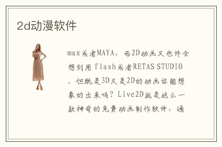 max或者M(jìn)AYA,而2D動(dòng)畫(huà)又也許會(huì)想到用 flash或者RETAS STUDIO。但既是3D又是2D的動(dòng)畫(huà)你能想象的出來(lái)嗎?Live2D就是這么一款神奇的免費(fèi)動(dòng)畫(huà)制作軟件,通過(guò)將 各部分