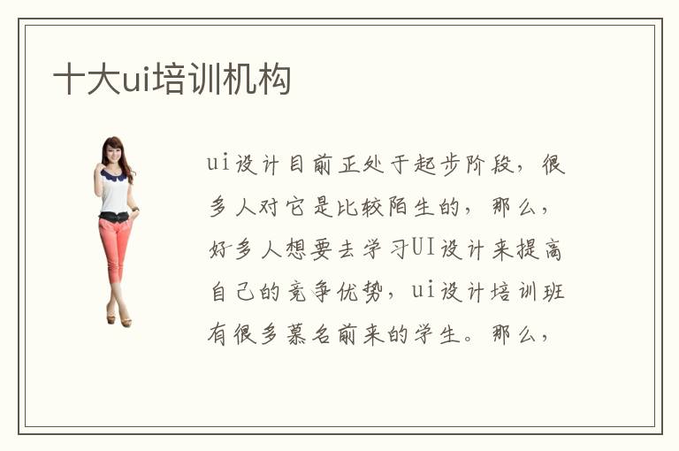 ui設(shè)計(jì)目前正處于起步階段,很多人對(duì)它是比較陌生的,那么,好多人想要去學(xué)習(xí)UI設(shè)計(jì)來(lái)提高自己的競(jìng)爭(zhēng)優(yōu)勢(shì),ui設(shè)計(jì)培訓(xùn)班有很多慕名前來(lái)的學(xué)生。那么,我們學(xué)會(huì)選擇優(yōu)質(zhì)的UI設(shè)計(jì)培訓(xùn)機(jī)構(gòu)就顯得頗為重要了。根據(jù)廣大學(xué)生的排名情況,十大UI培訓(xùn)機(jī)構(gòu)究竟是哪幾家?中國(guó)十大ui培訓(xùn)班培訓(xùn)效果比較情況怎么樣?中國(guó)十大ui培訓(xùn)機(jī)構(gòu)優(yōu)缺點(diǎn)。