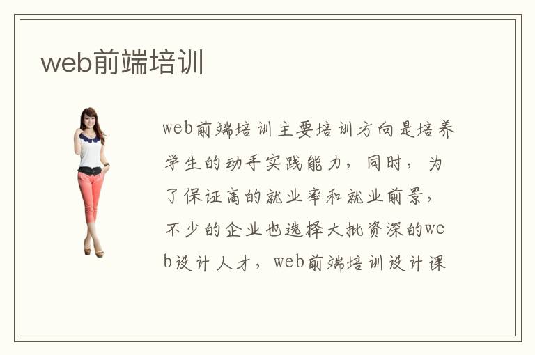 web前端培訓(xùn)主要培訓(xùn)方向是培養(yǎng)學(xué)生的動(dòng)手實(shí)踐能力,同時(shí),為了保證高的就業(yè)率和就業(yè)前景,不少的企業(yè)也選擇大批資深的web設(shè)計(jì)人才,web前端培訓(xùn)設(shè)計(jì)課程有專門的培訓(xùn)步驟,在各個(gè)老師的專業(yè)指導(dǎo)下,提高學(xué)生的專業(yè)素養(yǎng)水平,增強(qiáng)自我市場(chǎng)競(jìng)爭力。web前端培訓(xùn)大綱內(nèi)容有什么?web前端培訓(xùn)課程大綱全面嗎多角度嗎?web前端培訓(xùn)機(jī)構(gòu)都有哪些?