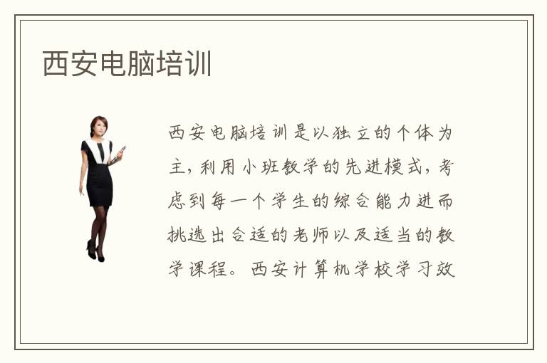 西安電腦培訓(xùn)是以獨(dú)立的個(gè)體為主,利用小班教學(xué)的先進(jìn)模式,考慮到每一個(gè)學(xué)生的綜合能力進(jìn)而挑選出合適的老師以及適當(dāng)?shù)慕虒W(xué)課程。西安計(jì)算機(jī)學(xué)校學(xué)習(xí)效率有保證嗎?答案是不確定的,西安電腦培訓(xùn)學(xué)校只是讓學(xué)生有一個(gè)比較好的學(xué)習(xí)環(huán)境,即便有了這樣的學(xué)習(xí)環(huán)境,學(xué)生的自控力也是很重要的,想要高效率地學(xué)習(xí),就應(yīng)該集中精力。西安電腦培訓(xùn)收費(fèi)情況是多少?