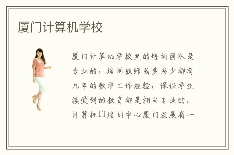 廈門計算機(jī)學(xué)校里的培訓(xùn)團(tuán)隊是專業(yè)的,培訓(xùn)教師或多或少都有幾年的教學(xué)工作經(jīng)驗,保證學(xué)生接受到的教育都是相當(dāng)專業(yè)的。計算機(jī)IT培訓(xùn)中心廈門發(fā)展有一定的預(yù)見性,在未來的幾年,計算機(jī)IT行業(yè)作為高新產(chǎn)業(yè)在廈門依然呈現(xiàn)熱度不減的狀態(tài)。廈門IT培訓(xùn)內(nèi)容全面嗎?廈門電腦培訓(xùn)涉及的課程培訓(xùn)很全面,而且大多數(shù)課程都是國內(nèi)很吃香的課程專業(yè)。