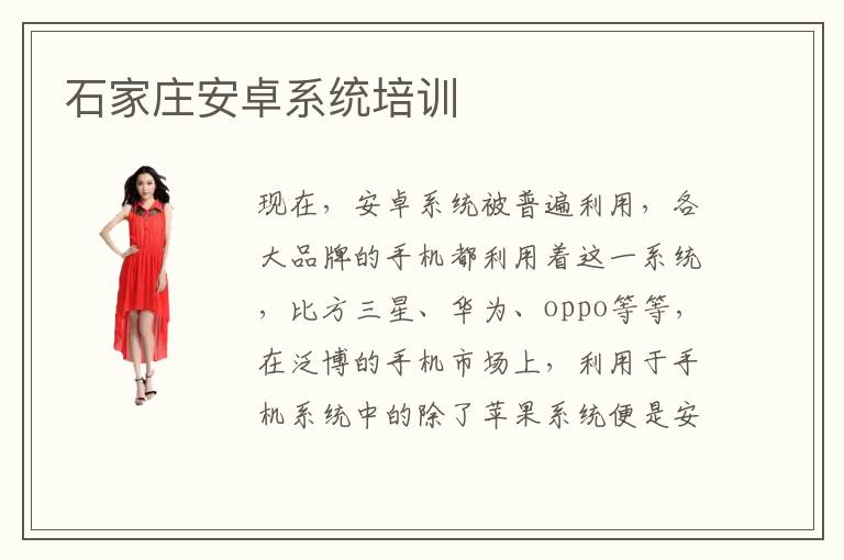 現(xiàn)在,安卓系統(tǒng)被普遍利用,各大品牌的手機(jī)都利用著這一系統(tǒng),比方三星、華為、oppo等等,在泛博的手機(jī)市場(chǎng)上,利用于手機(jī)系統(tǒng)中的除了蘋(píng)果系統(tǒng)便是安卓系統(tǒng)了,而且安卓系統(tǒng)利用的最為普遍,用戶對(duì)其評(píng)估也很高。面臨著這么大的需求,石家莊增加了良多安卓系統(tǒng)培訓(xùn)學(xué)校,以便于專心肄業(yè)的人們接管培訓(xùn),也增進(jìn)了石家莊地域關(guān)于安卓系統(tǒng)的研討。石家莊安卓系統(tǒng)培訓(xùn)推薦電腦學(xué)校