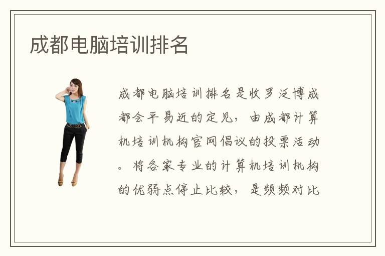 成都電腦培訓(xùn)排名是收羅泛博成都會平易近的定見,由成都計算機培訓(xùn)計算機培訓(xùn)機構(gòu)官網(wǎng)倡議的投票活動。將各家專業(yè)的計算機培訓(xùn)機構(gòu)的優(yōu)弱點停止比較,是頻頻對比、不竭挑選而得出的成果,是列位想要學(xué)習(xí)計算機專業(yè)的學(xué)生,在選擇應(yīng)當(dāng)去哪家培訓(xùn)機構(gòu)接管講授時的主要參考根據(jù)。選擇靠譜的培訓(xùn)機構(gòu)關(guān)于人人來講,就像是高考填報自愿一樣很主要,將間接決議你的將來就業(yè)成績。成都電腦培訓(xùn)電腦培訓(xùn)排名推薦電腦學(xué)校