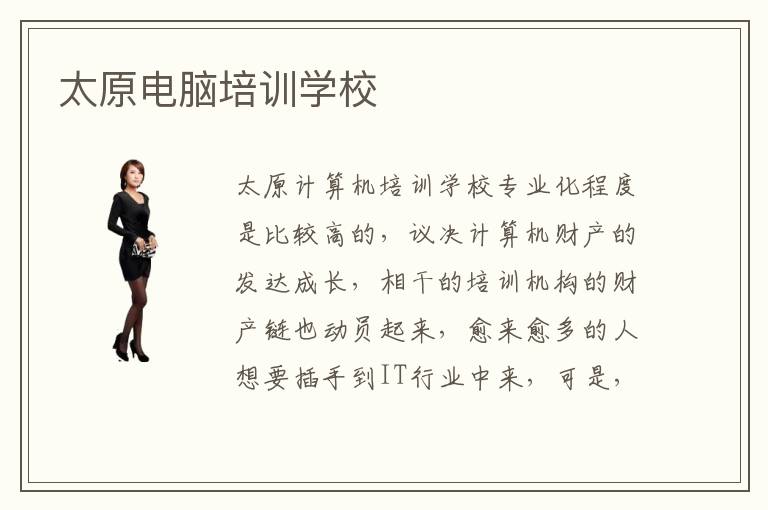 太原計(jì)算機(jī)培訓(xùn)計(jì)算機(jī)培訓(xùn)學(xué)校專業(yè)化程度是比較高的,議決計(jì)算機(jī)財(cái)產(chǎn)的發(fā)達(dá)成長(zhǎng),相干的培訓(xùn)機(jī)構(gòu)的財(cái)產(chǎn)鏈也動(dòng)員起來(lái),愈來(lái)愈多的人想要插手到IT行業(yè)中來(lái),可是,學(xué)好IT技術(shù)并不是是一件輕易的事變,首先你得把握周密的邏輯思惟,其次,要選擇太原電腦培訓(xùn)機(jī)構(gòu)的相干課程講授內(nèi)容來(lái)讓本身學(xué)習(xí)效力大幅度挑升,最后,要問(wèn)本身太原計(jì)算機(jī)培訓(xùn)上風(fēng)有哪些,進(jìn)而好好掌控。太原計(jì)算機(jī)培訓(xùn)學(xué)校推薦電腦學(xué)校