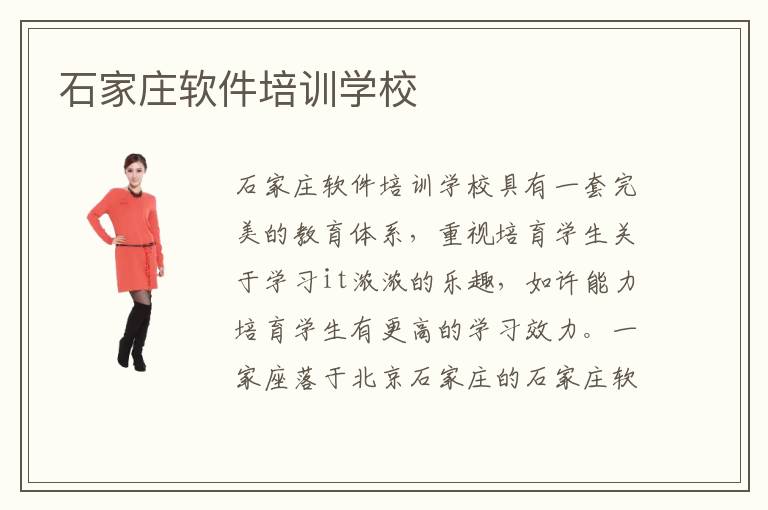 石家莊軟件培訓(xùn)軟件培訓(xùn)學(xué)校具有一套完美的教育體系,重視培育學(xué)生關(guān)于學(xué)習(xí)it濃濃的樂趣,如許能力培育學(xué)生有更高的學(xué)習(xí)效力。一家座落于北京石家莊的石家莊軟件培訓(xùn)學(xué)校,很是合適以后但愿處置計算機(jī)行業(yè)的學(xué)生前來學(xué)習(xí)。石家莊軟件培訓(xùn)學(xué)校怎么樣呢?人人來看看就曉得啦!我們必然會做到讓一切到校學(xué)習(xí)的學(xué)生足意,保證學(xué)生的就業(yè)成績。石家莊軟件培訓(xùn)學(xué)校推薦電腦學(xué)校