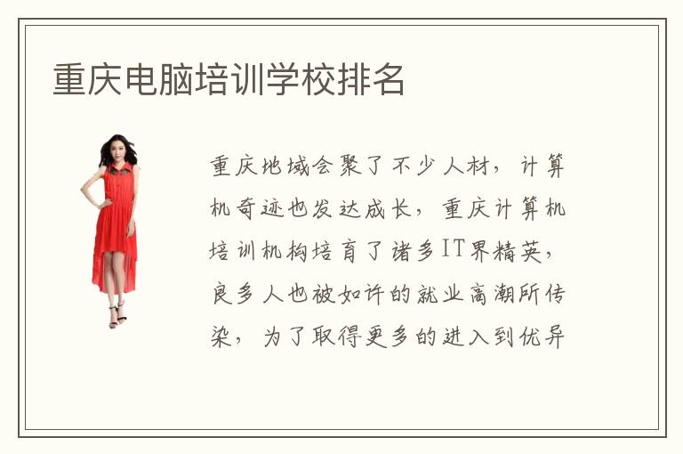 重慶地域會(huì)聚了不少人材,計(jì)算機(jī)奇跡也發(fā)達(dá)成長,重慶計(jì)算機(jī)培訓(xùn)計(jì)算機(jī)培訓(xùn)機(jī)構(gòu)培育了諸多IT界精英,良多人也被如許的就業(yè)高潮所傳染,為了取得更多的進(jìn)入到優(yōu)異企業(yè)工作的機(jī)遇,我們就要挑升本身,可以進(jìn)入培訓(xùn)機(jī)構(gòu)學(xué)習(xí)電腦常識(shí)。參考重慶計(jì)算機(jī)培訓(xùn)學(xué)校排名,我們試著選出心儀的培訓(xùn)學(xué)校,重慶計(jì)算機(jī)培訓(xùn)學(xué)校學(xué)費(fèi)排名可托嗎?重慶計(jì)算機(jī)培訓(xùn)班比較如何?重慶計(jì)算機(jī)培訓(xùn)學(xué)校排名推薦電腦學(xué)校