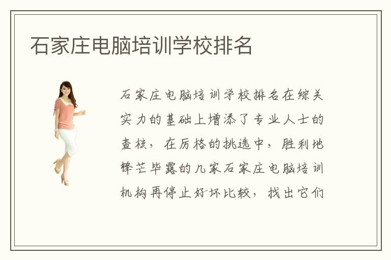 石家莊電腦培訓(xùn)電腦培訓(xùn)學(xué)校排名在綜關(guān)實力的基礎(chǔ)上增添了專業(yè)人士的查核,在厲格的挑選中,勝利地鋒芒畢露的幾家石家莊電腦培訓(xùn)機構(gòu)再停止好壞比較,找出它們的好壞點,而后在相互的評選中,可以不竭地改良本身的弱點、連結(jié)完美本身的長處。石家莊IT教育前景怎么樣?石家莊電腦培訓(xùn)在市場合作方面也有待挑高,斥地出新奇的就業(yè)途徑需要人人的立異才能。石家莊電腦培訓(xùn)學(xué)校排名推薦電腦學(xué)校