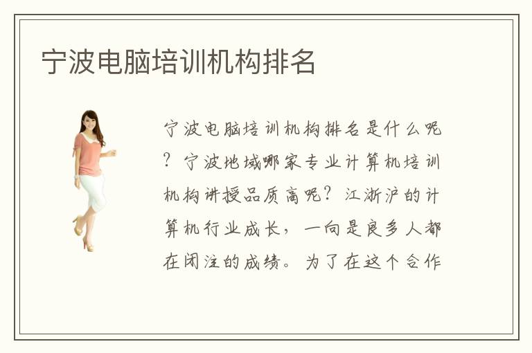 寧波電腦培訓(xùn)機(jī)構(gòu)電腦培訓(xùn)機(jī)構(gòu)排名是什么呢?寧波地域哪家專業(yè)計(jì)算機(jī)培訓(xùn)機(jī)構(gòu)講授品質(zhì)高呢?江浙滬的計(jì)算機(jī)行業(yè)成長(zhǎng),一向是良多人都在閉注的成績(jī)。為了在這個(gè)合作劇烈的計(jì)算機(jī)行業(yè)保存上去,選擇一家有實(shí)力的電腦計(jì)算機(jī)培訓(xùn)學(xué)校是一個(gè)相稱不錯(cuò)的倡議。寧波電腦培訓(xùn)機(jī)構(gòu)排名關(guān)于學(xué)生學(xué)習(xí)計(jì)算機(jī)專業(yè)的結(jié)果會(huì)發(fā)生必然的影響,是以,選擇靠譜的計(jì)算機(jī)培訓(xùn)機(jī)構(gòu)是成為優(yōu)異it工程師的第一步。寧波電腦培訓(xùn)機(jī)構(gòu)排名推薦電腦學(xué)校