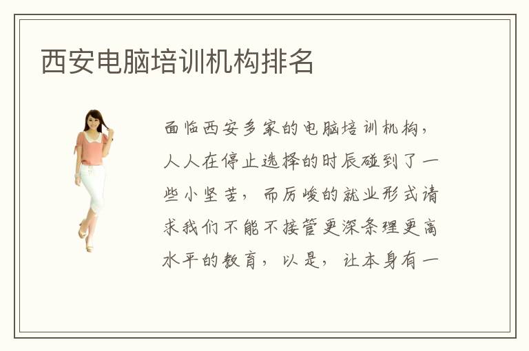 面臨西安多家的電腦培訓(xùn)機(jī)構(gòu),人人在停止選擇的時(shí)辰碰到了一些小堅(jiān)苦,而厲峻的就業(yè)形式請(qǐng)求我們不能不接管更深條理更高水平的教育,以是,讓本身有一雙火眼金睛”去分辨西安電腦培訓(xùn)機(jī)構(gòu)的黑白很主要。先可以議決西安電腦培訓(xùn)電腦培訓(xùn)機(jī)構(gòu)排名來(lái)停止浮淺地領(lǐng)會(huì)大抵的情況,而后實(shí)地訪問(wèn),看看哪家西安電腦培訓(xùn)機(jī)構(gòu)好,終究要弄清晰西安電腦培訓(xùn)機(jī)構(gòu)培訓(xùn)教育形式能否是對(duì)本身有效的。西安電腦培訓(xùn)機(jī)構(gòu)排名推薦電腦學(xué)校