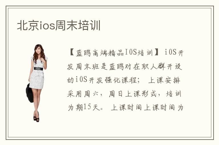 【藍(lán)鷗高端精品I0S培訓(xùn)】 i0S開發(fā)周末班是藍(lán)鷗對在職人群開設(shè)的i0S開發(fā)強(qiáng)化課程; 上課安排采用周六,周日上課形式,培訓(xùn)為期15天。 上課時(shí)間上課時(shí)間為(上午900-12